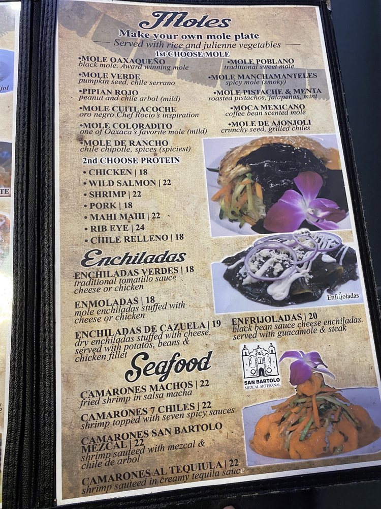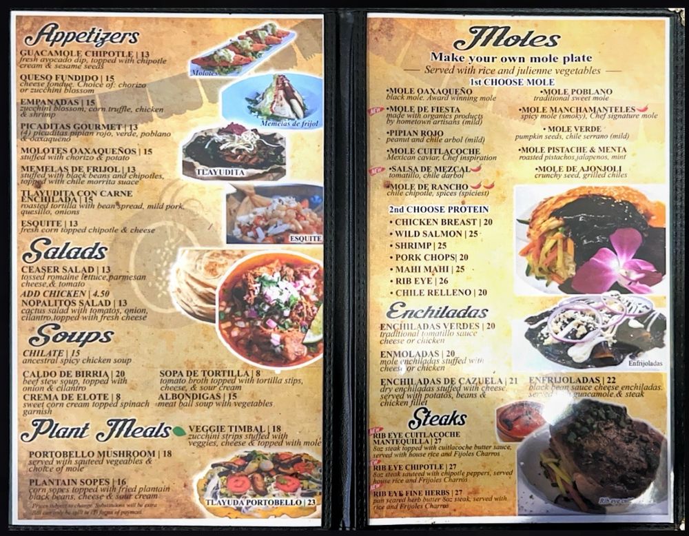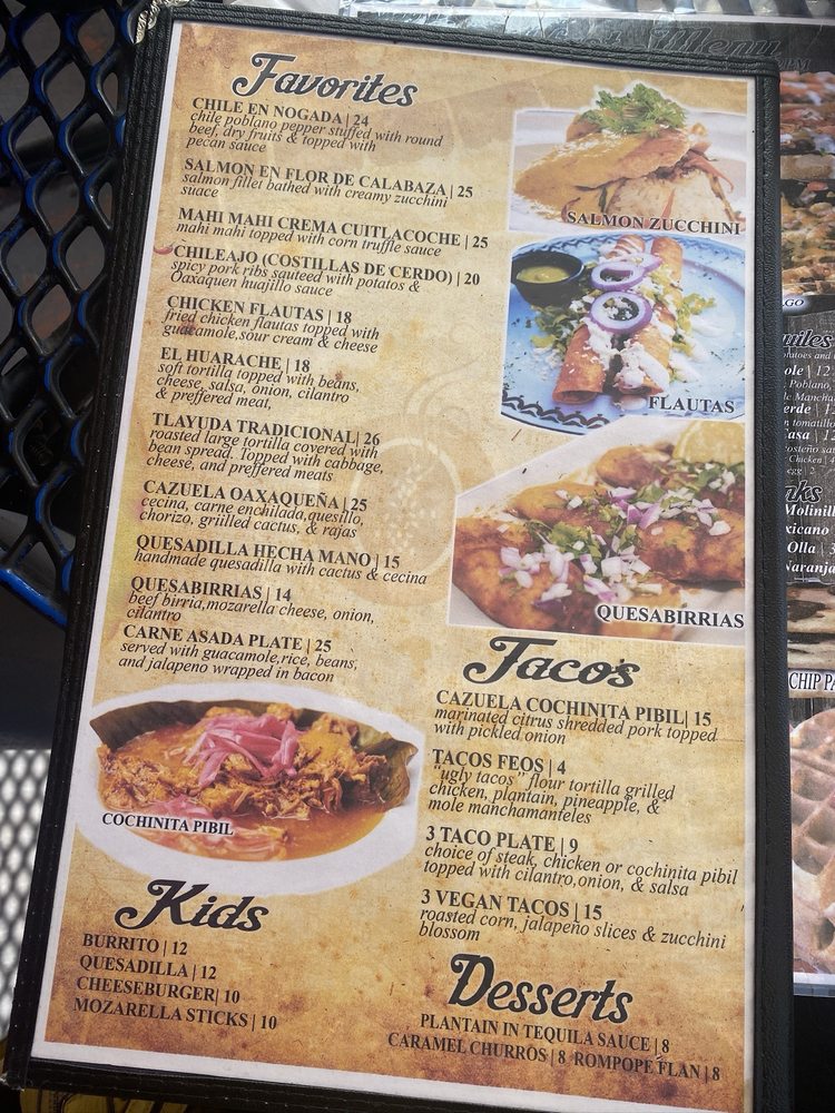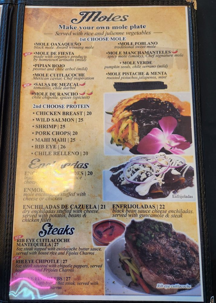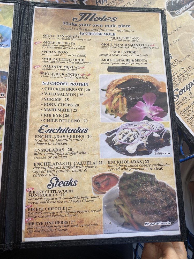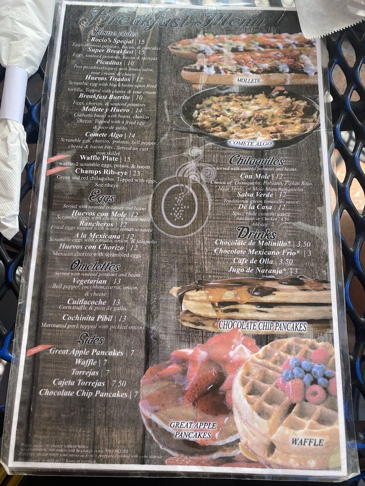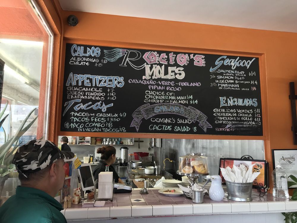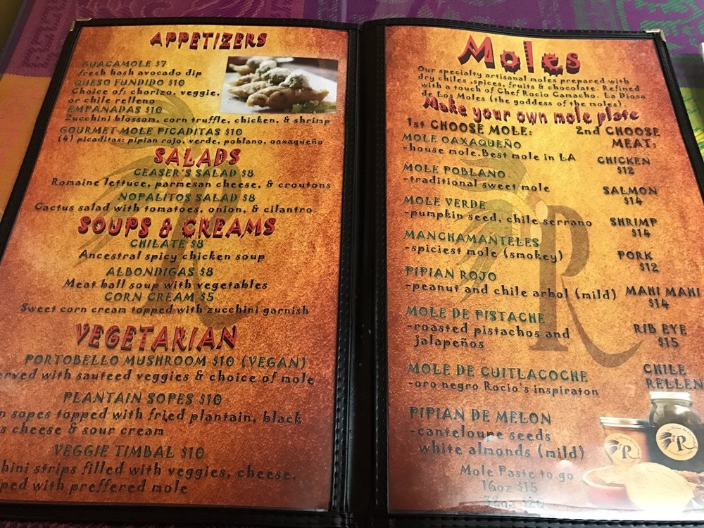 Introducing the menu at Rocio’s Mexican Kitchen, a hidden gem in Bell Gardens, CA, known for its authentic Mexican cuisine and especially its variety of flavorful moles. The menu offers a range of options, from breakfast items like Mexican French toast to traditional dishes like Enchiladas Verdes and the famous cochinita pibil. The star of the show is the ten different moles, each made with unique ingredients like pistachios, mint, pumpkin seeds, and corn fungus. Customers rave about the bold flavors, friendly service, and cozy ambiance of this small corner spot. Don't miss out on trying the salmon with squash blossom sauce or the spicy bbq ribs with potatoes. With options for vegans and pescatarians, Rocio's Mexican Kitchen promises a delightful dining experience for all.